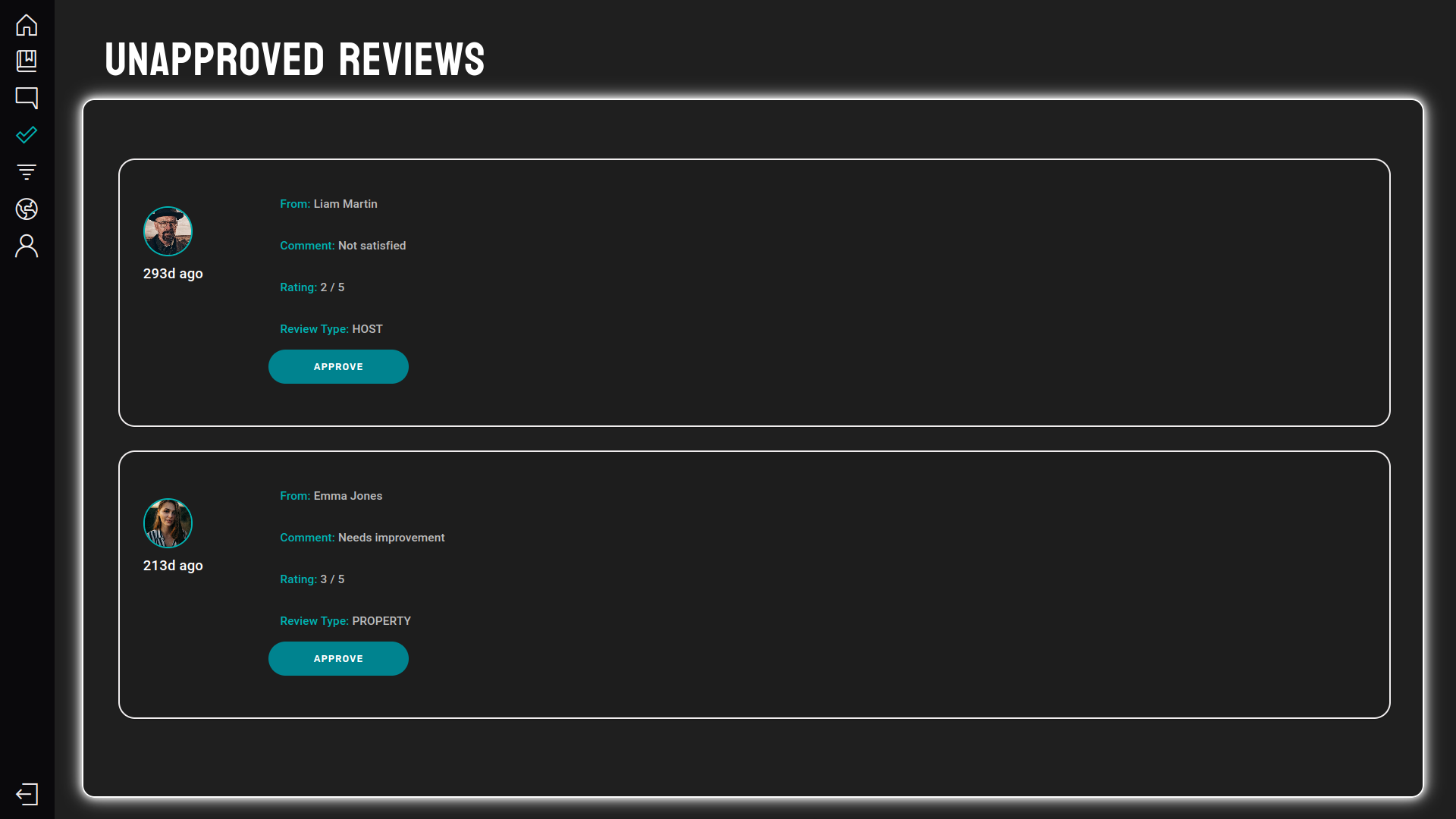 • Reviews are approved by an admin before they are shown